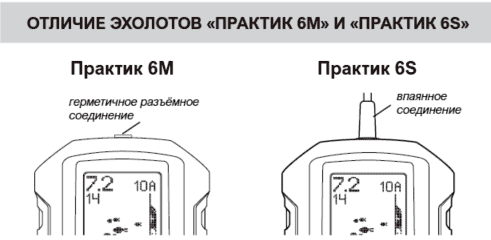 Главное отличие между эхолотами Практик 6S и 6M это провод.