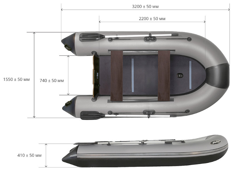 Надувная лодка ПВХ Риф 320KC (фанерный пайол + стрингера)