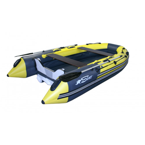 Надувная лодка Reef SKAT Тритон обладает надувным дном низкого давления. Надувное дно представляет собой независимый герметичный отсек, вклеенный между баллонами надувной лодки. Одним из очевидных плюсов такой конструкции является малый вес, компактность и жесткость в собранном виде. При сборке надувной лодки с дном низкого давления, как таковой монтаж пола отсутствует – достаточно просто накачать отсеки лодки и установить сиденья и весла.