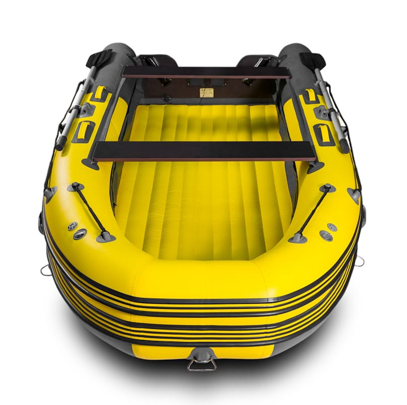 Для максимальной защиты лодки от механических повреждений, баллоны дополнительно проклеены привальным брусом с брызгоотбойником (броня) в 2 ряда. По всей центральной части и боковым частям низа дна, а также на концах баллонов дополнительно наклеен донный брус.