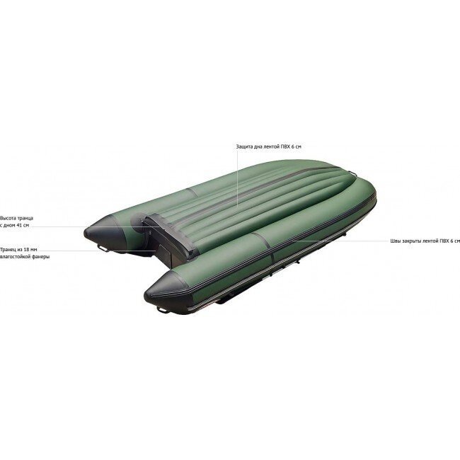 Независимые отсеки надувного дна, при наполнении их воздухом преобразуют дно в V - образную форму, что дает лодке превосходную управляемость по волне.