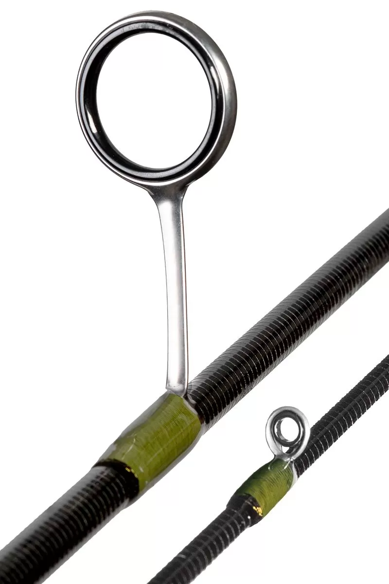 Быстрый строй позволяет забрасывать далеко и точно, не вкладываясь в заброс: 2 грамма с тонким слагом улетают на 28 метров, а 12 грамм с виброхвостом 2.2" на впечатляющие 60.4 метров. Дальнему забросу помогают лёгкие однолапые кольца с очень тонкой вставкой SiC: шнур скользит через кольца без сопротивления, поэтому дальность и точность позволяют добрасывать до большинства интересных мест, несмотря на длину спиннинга.