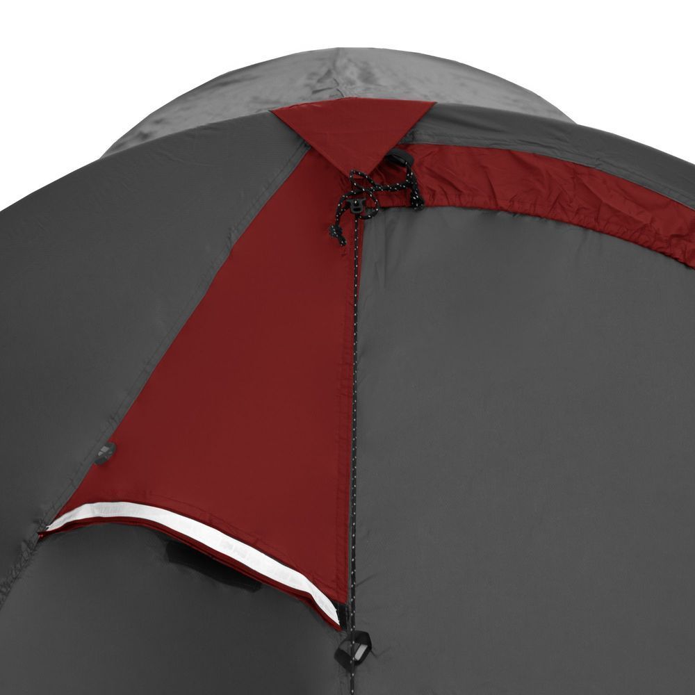 Внешний тент из полиэстера Diamond RipStop, не растягивается от влажности и жары, не съеживается от сухости и холода. Рипстопные элементы (толстые нитки в структуре ткани) не дадут маленькой зацепке или дырочке от искры расползаться дальше. Водостойкость тента 8 000 мм, это очень много. Полиуретановое покрытие защищает и от ультрафиолета.